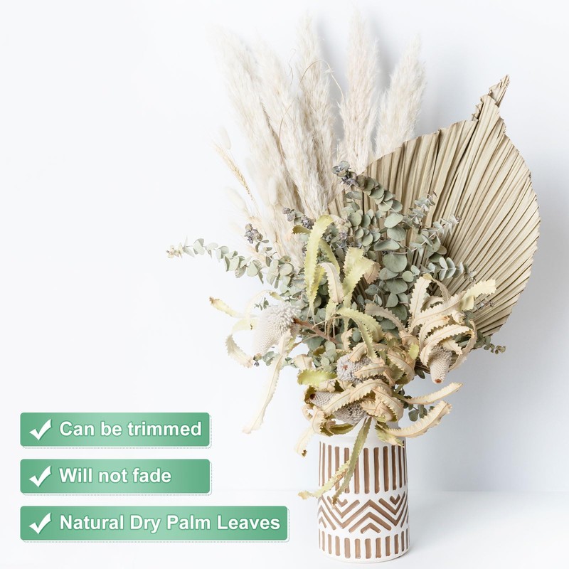 - [Attention] - Dried palm leaf are natural products. It is normal for them to have spots, cracks or other flaws on their surfaces, which do not affect the decorative beauty.