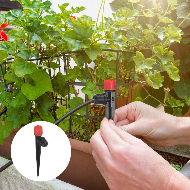 The drip head design is easy to disassemble and clean, and not easy to clog. With a pointed bottom for easy insertion into the soil, simply push the tube firmly onto the barb and tighten the nut, plug and play, and easy to install.