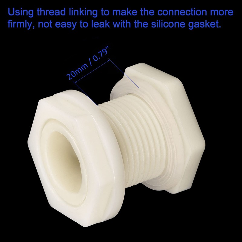 - PACKAGE INCLUDE: 1 Pack Bulkhead Fitting, which overall height is 36mm / 1.42 Inch, male thread size is G3/4 male, for wall thickness is 20mm / 0.79 Inch.