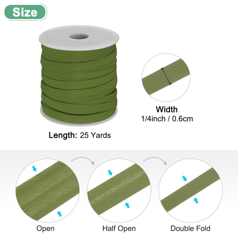 • [Size & Package] - Material: Cotton; Color: Dark Green; Overall Size, Length: 25 Yards; Width: 0.6cm-1/4 Inch; Package Includes: 1Pcs x Double Sewing Bias Tape