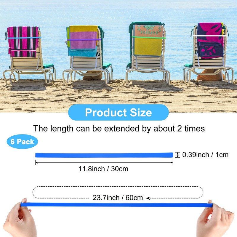 • [Größe und Paket] – Die Poolstuhl-Handtuchhalter sind klein und leicht, entworfen, um leicht in Ihren Koffer oder Ihre Strandtasche zu passen, ohne zu viel Platz zu beanspruchen. 6 Stück pro Packung, Größe: 30 x 1 cm, Dicke: 1,3 mm. Farbe: Blau