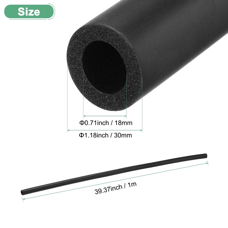 M METERXITY Pipe Insulation Foam Tube, 18mm ID 30mm OD 1m Length, Soft Flexible Foam Tubing Pipe Foam Insulation for Handle Grip Support/Guitar Stand/Roof Racks [Black]