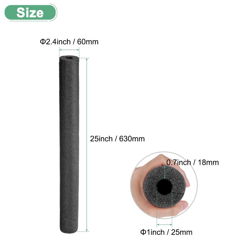 - [Size & Package] - 1pcs pipe insulation roll with 630mm x 60mm x 25mm x 18mm / 25"x 2.4"x 1"x 0.7"(L x W x ID x T).