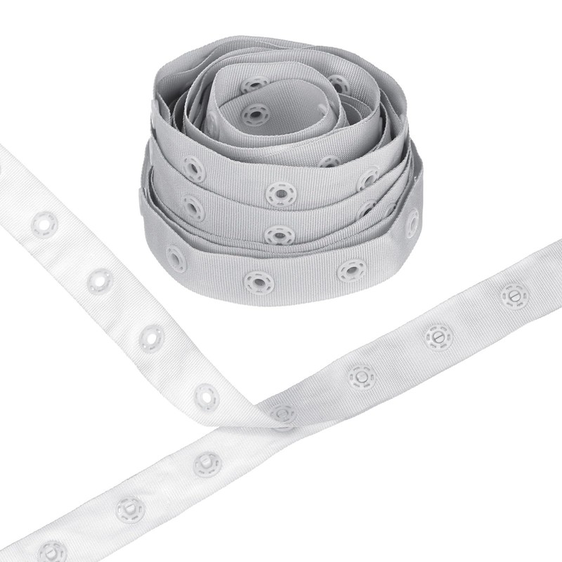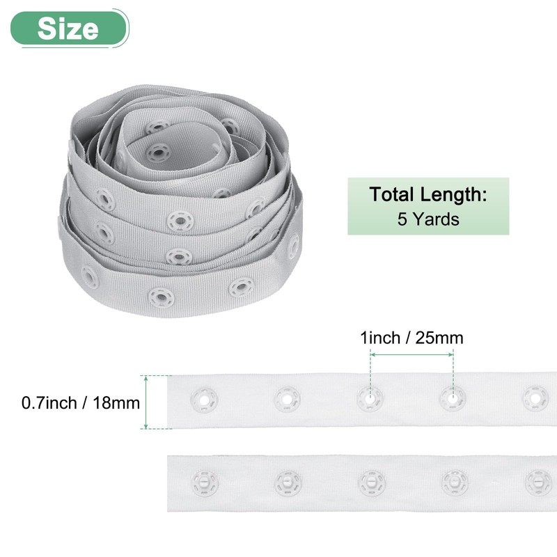 - [Size & Package] - 1pcs gray snap tape for sewing with 5 yards total length, width is 18mm / 0.7inch, the distance between buttons is 25 mm / 1 inch