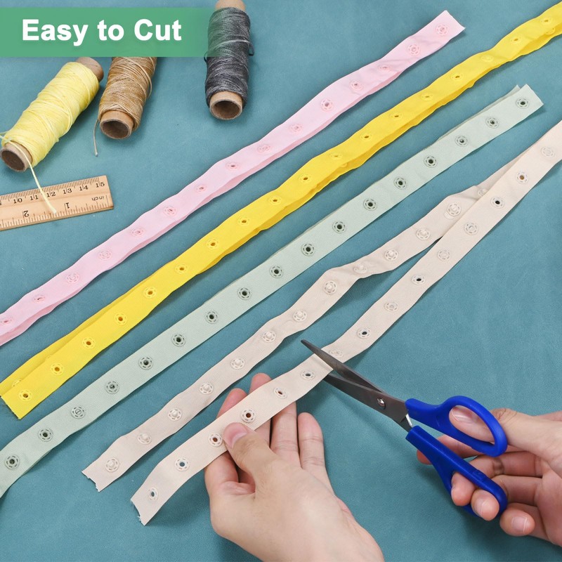 - [Durable Snap Tape] - This plastic snaps for sewing is made of durable polyester and plastic snaps. It will not break or fall apart easily. It is durable and has a long service life. It is your best choice for sewing or fastening clothes