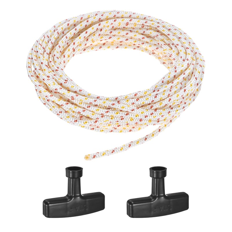 - [Size & Package] - Material: Nylon PP Polyester; Color: White Red Yellow,Black; Diameter: 5mm/0.2 Inch; Length: 10m/32.8 Feet; Package Includes: 1-Pack x Pull Starter Rope(16 shares) with 2pcs handles