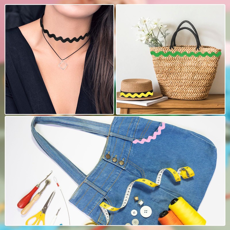 - [Installation] - Customize the wave bending fringe trim ribbon to your preferred length using scissors or crafting tools, and affix it onto the desired fabric surface either through sewing or adhesive methods