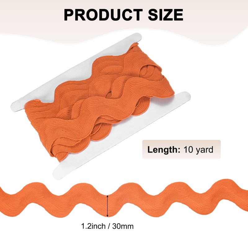 M METERXITY Rick Rack Trim, 10 Yard 30mm / 1.2 Inch Wave Bending Fringe Trimming Ribbon for Sewing/DIY Crafts/Clothes/Decoration, Polyester RIC Rac Trim [Orange]
