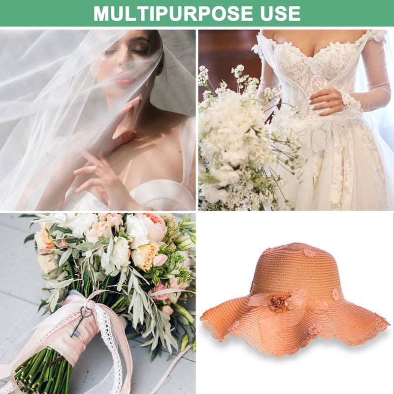 - [Multipurpose Use] - Suitable for wedding dresses, formal wear, dance costumes, hat projects, hat bands, hair accessories, veil, and more clothing sewing. Can also be used to wrap gifts, bouquets, decorate arches, wedding frames, office desks, etc.