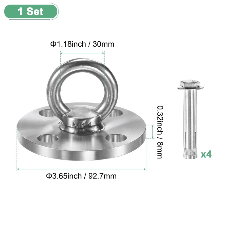 • [Size & Package] - Size: Round Bottom Diameter: 3.65Inch/92.7mm, Round Bottom Thickness: 0.32Inch/8mm, Round Diameter: 1.18Inch/30mm. You will receive a round hammock strap and 4-pcs mounting screws.