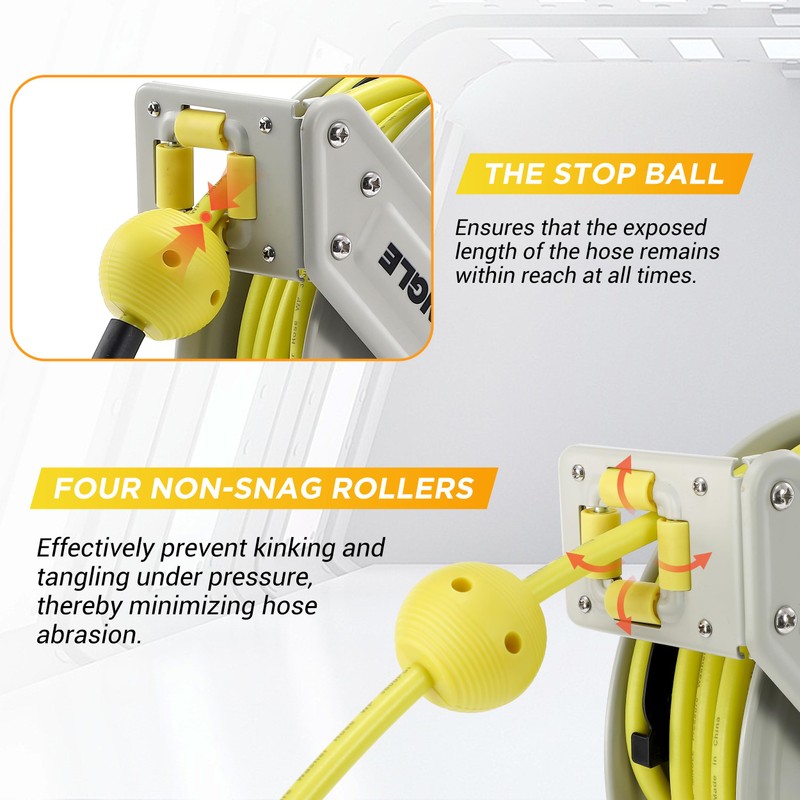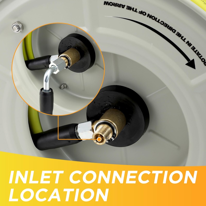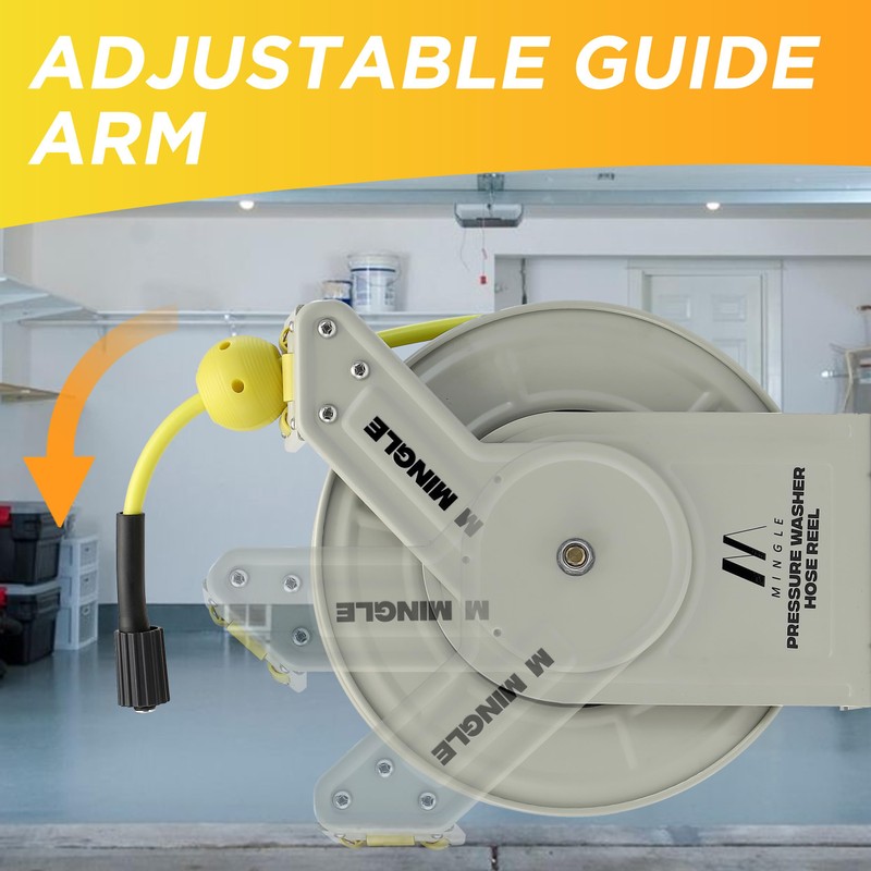 M MINGLE Retractable Pressure Washer Hose Reel, 1/4" × 60ft Heavy Duty Professional Hose Reel, Auto Rewind Power Washer Hose Reel, Wall/Floor Mounted, 3600 PSI