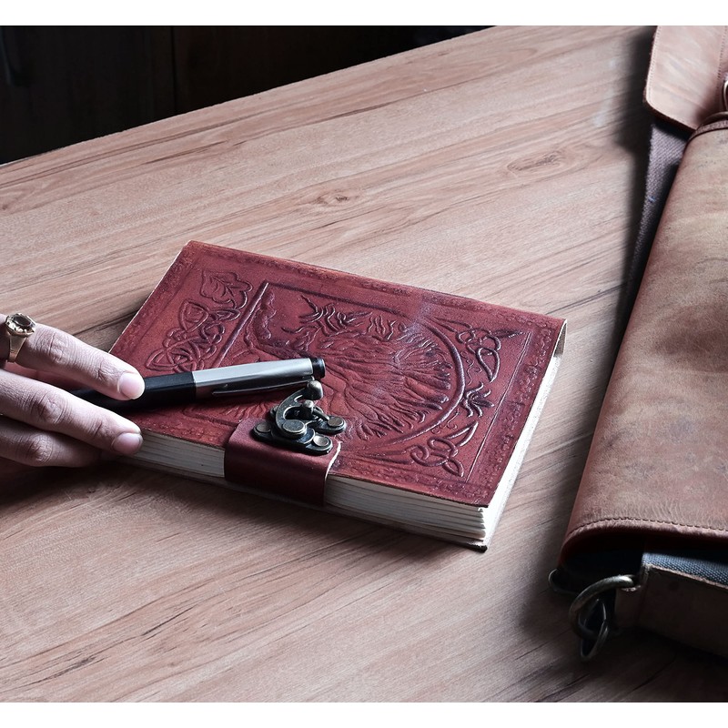 M&N Handmade Tree of Life Embossed Tanned Leather Journal, Notebook, Blank Pages