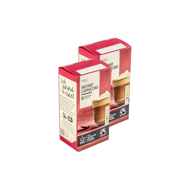 M&S Marks & Spencer 16 x Instant Cappuccino Individual Coffee Sachets, Rich & Balanced - 16 x 15.5g