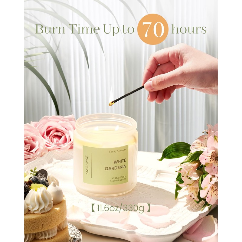 M&SENSE White Gardenia Scented Candle - 11.6oz Natural Soy Wax 70-Hour Long Lasting Burn Time Non Toxic, 2-Wick Spring Flower Candle for Home Decor Slow-Burning Aromatherapy Gifts
