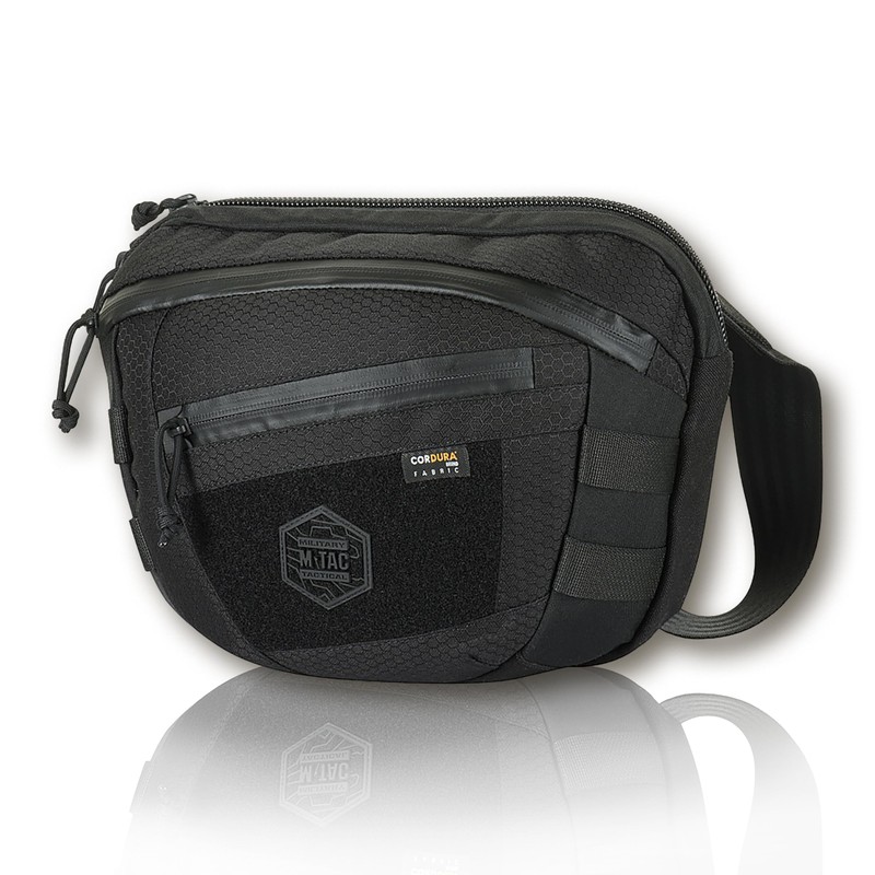 M-Tac Tactical Large Crossbody Bag for Men - Concealed Carry Sling - Multicam Black CCW Chest Bag - Elite Sphaera Shoulder Pack (Hex, Loop Panel)