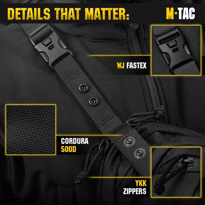- Elite Quality: Crafted from Cordura 500D/1000D, the tactical chest pack is built to resist wear and tear; featuring YKK zippers and Woojin buckles, this black crossbody bag ensures long-lasting performance; a tactical bag for all your EDC and CCW bag needs