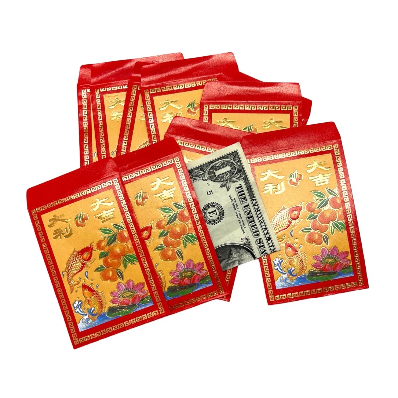 • AUSPICIOUS SYMBOLISM: Beautiful red envelopes featuring gold-embossed fish and peaches, powerful symbols of abundance and longevity in Chinese culture