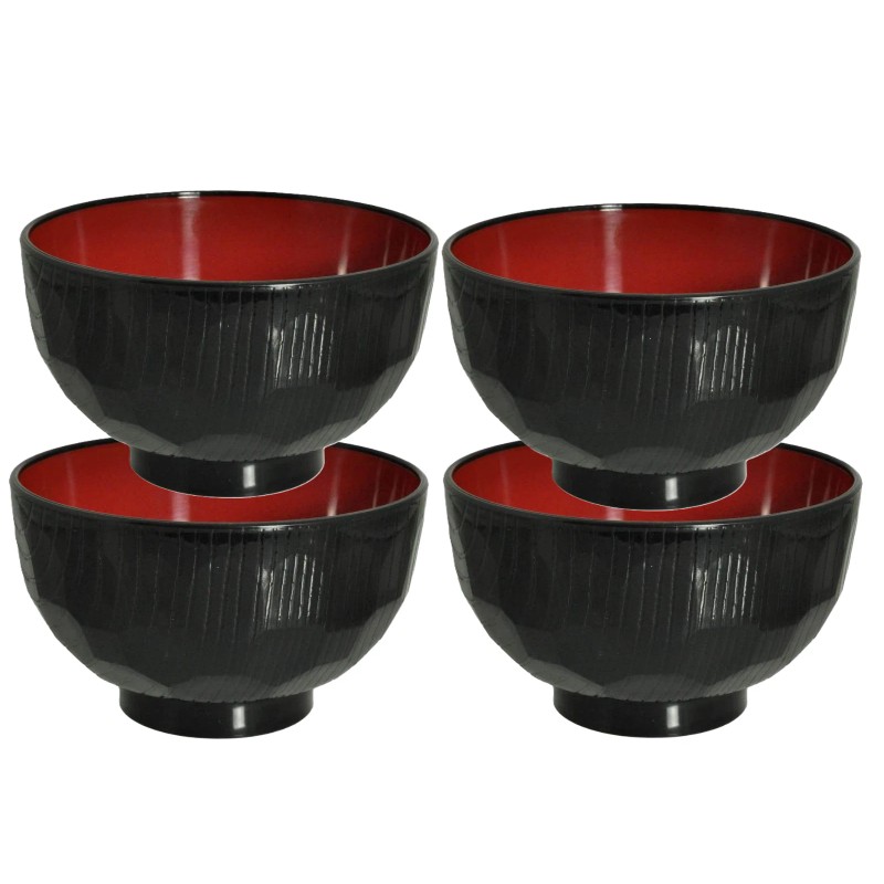 SW: Japanese noodle soup bowl; rice bowl Japanese style; black and red soup bowl; diamond cut design bowl; M.V. Trading noodle bowl; miso soup bowl; ramen small serving bowl; Asian rice noodle bowl; plastic Japanese soup bowl; restaurant noodle soup bowl; sushi side dish bowl; Japanese appetizer bowl; microwave safe soup bowl; dishwasher safe noodle bowl; versatile Asian soup bowl; Korean soup bowl; Chinese noodle bowl; lightweight rice bowl; authentic Japanese tableware; compact noodle bowl