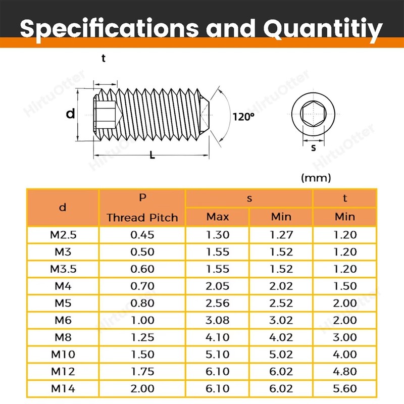 Upgrade your projects with HirtuOtter’s set screws. Made from premium 304 stainless steel, these screws offer excellent rust, oxidation, and corrosion resistance, making them ideal for both indoor and outdoor applications.