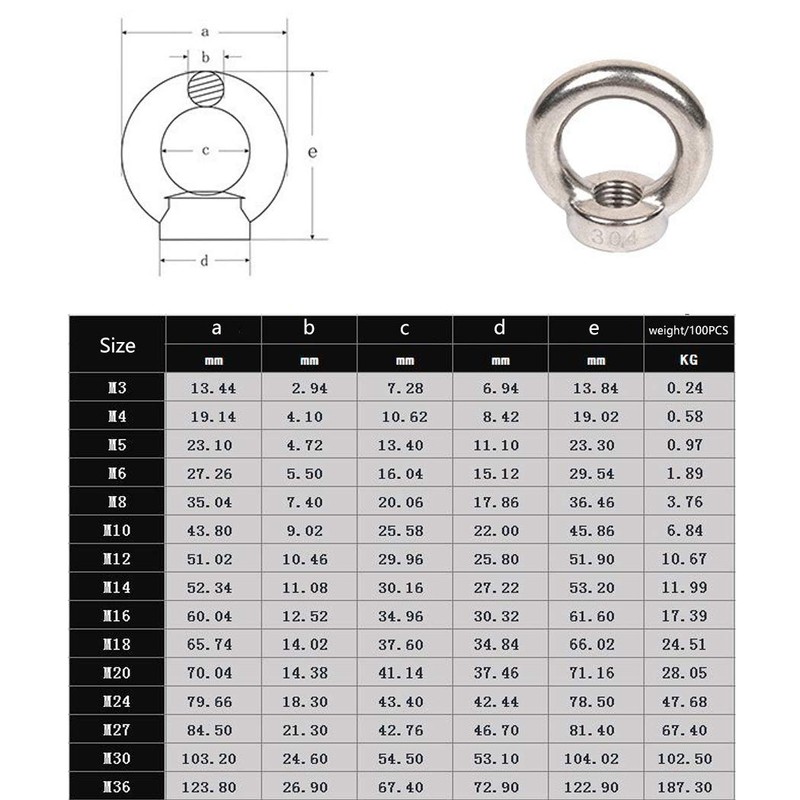 M12 Ring Shape Lifting Eye Nut 304 Stainless Steel Threaded Nut Fastener-2 Pack