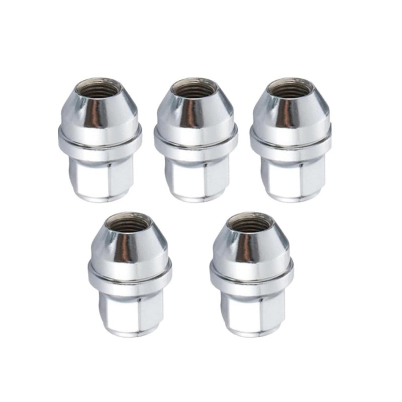 M12×1.5 Stainless Steel Wheel Lug Nut Set – 5‑Piece Chrome Nuts (28×19 mm) for Ford Focus/Fusion/Escape & More
