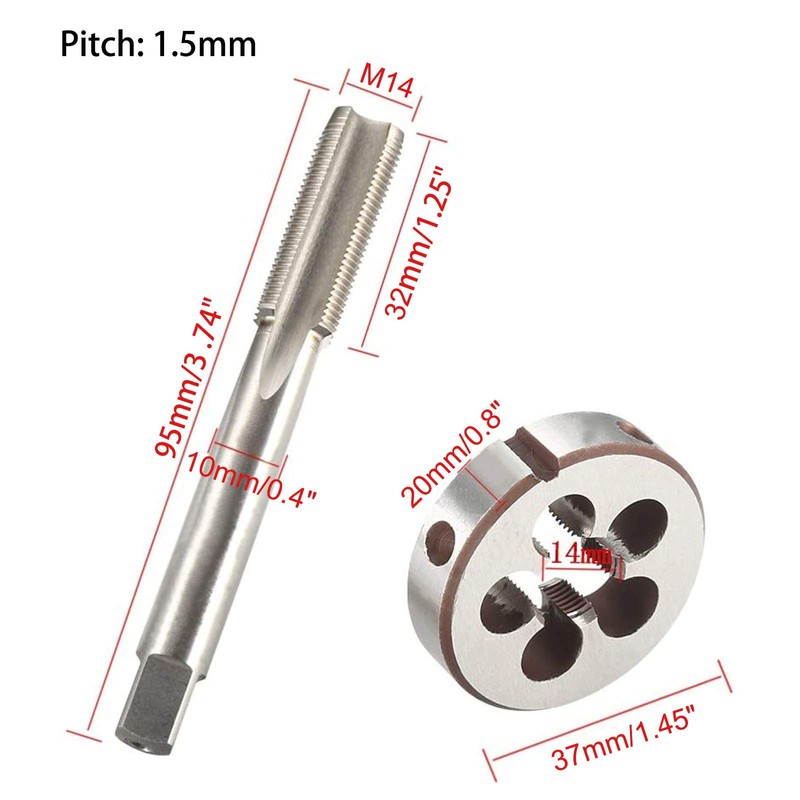 M14 x 1.5mm HSS Metric Tap And Die Set Thread Tap And Round Thread Die Right Hand HSS Taper Silver Tone (2Pcs)