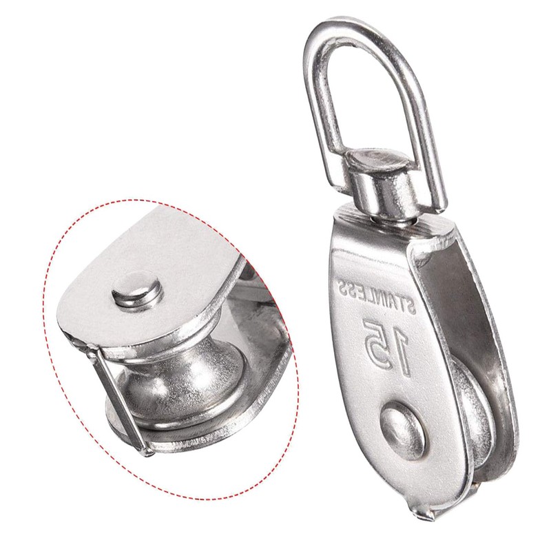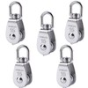 M15 Single Pulley Snatch Block Lifting Crane Swivel Hook Single Pulley 77LB/35 kg Load CapacityStainless Steel Swivel Pulley Hanging Wire Towing Wheel for Wire Rope5PCS