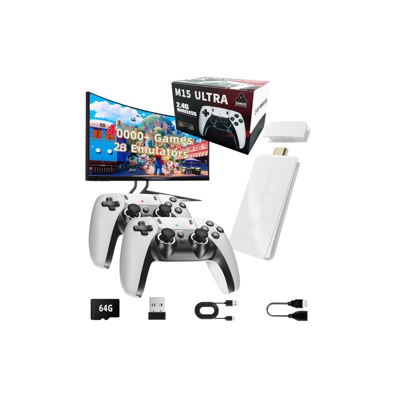 M15 Ultra Retro Game Console, Gamepad Handheld Arcade TV Home Video 4K Resolution, 64GB Memory, 2.4GHz Wireless Controller, Multi-Player Support, 40000+ Games