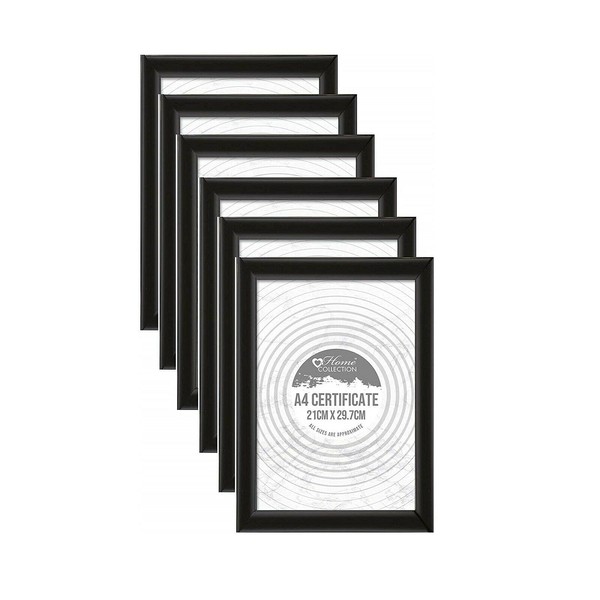 M1SS (Set of 6) - A4 Black Wooden Picture Photo Frame Certificate Frame Includes Styrene Front For Home Family Office Decor, Classic Wall Mountable & Tabletop Frames (21 x 29.7 CM)
