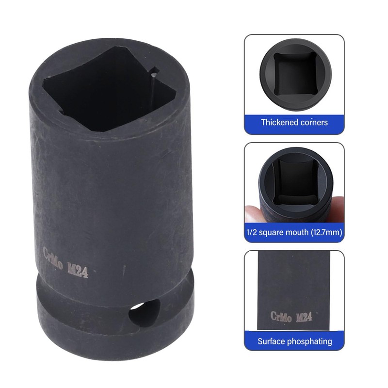 M24 Square Tap Socket, 1/2" Female Thread, Square Hole Drive Socket, Chrome Molybdenum Steel, Rounded Corner Design, Laser Etched, Connected