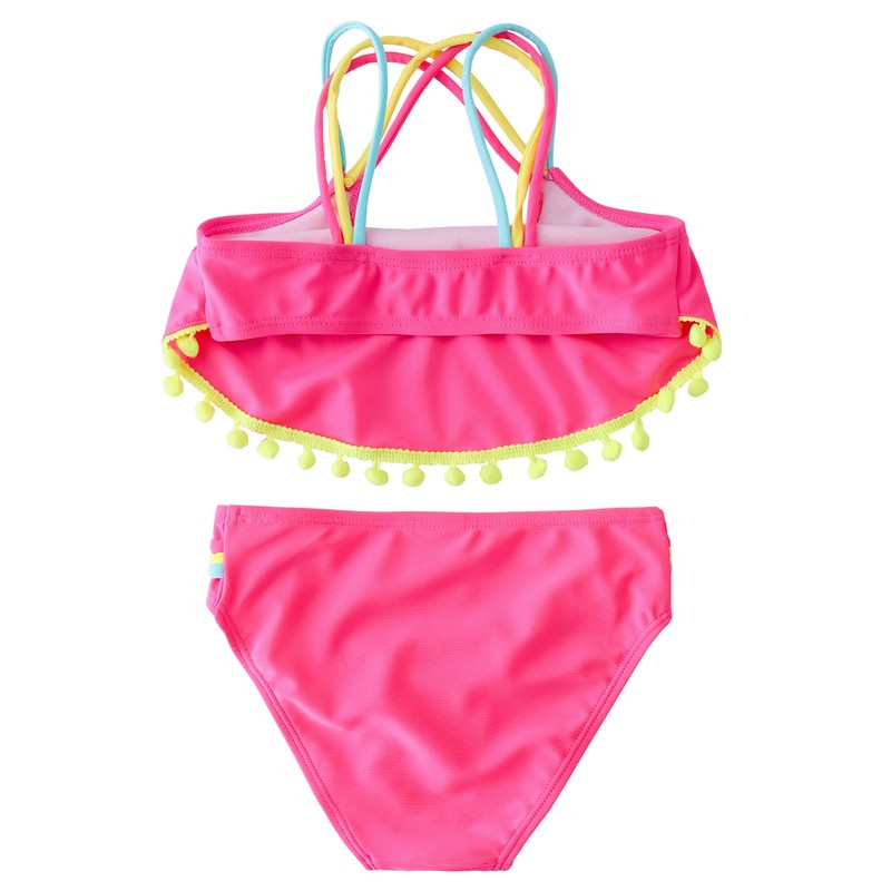 M2C Girls Pompom Tassel Two Piece Bikini Set Triple Cross Strap Crop Swimsuits Rose 9-10