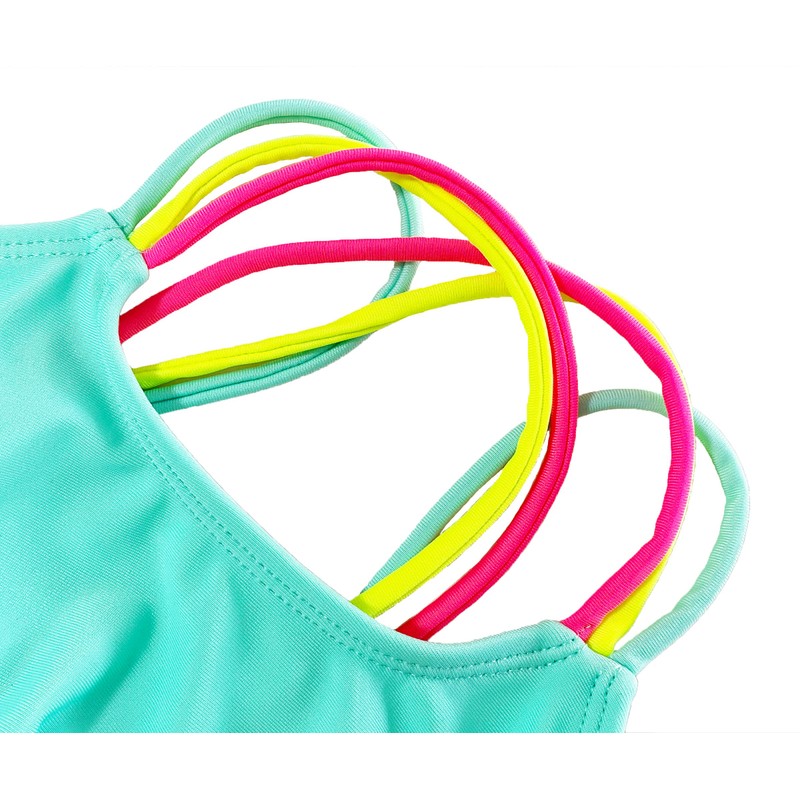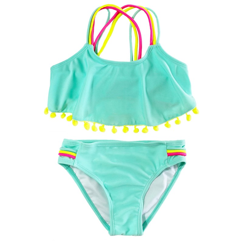 M2C Girls Pompom Tassel Two Piece Bikini Set Triple Cross Strap Crop Swimsuits Turquoise 7-8