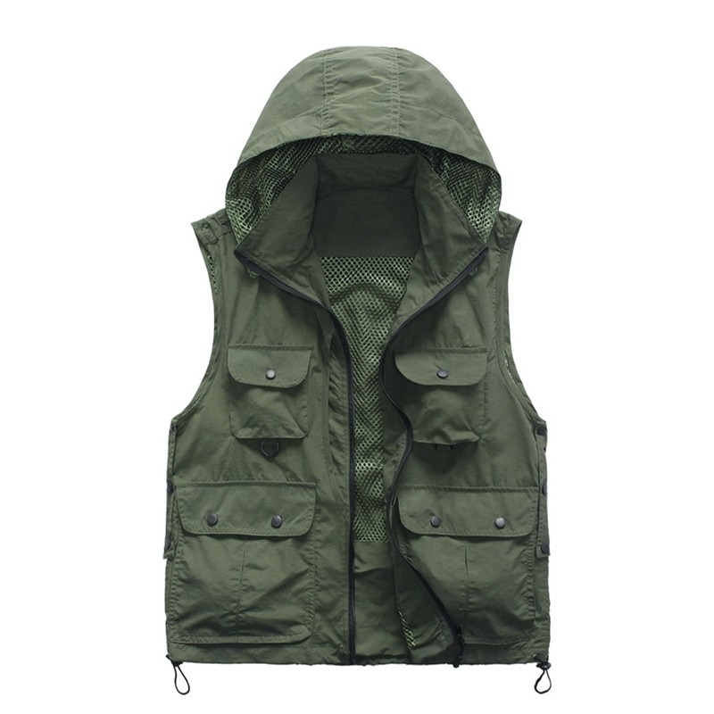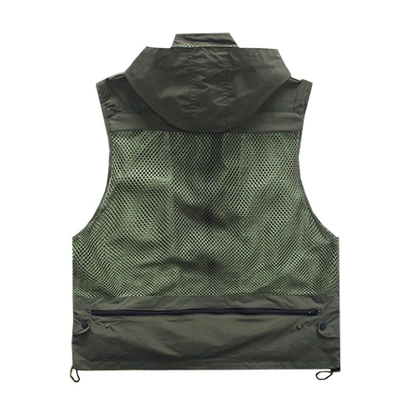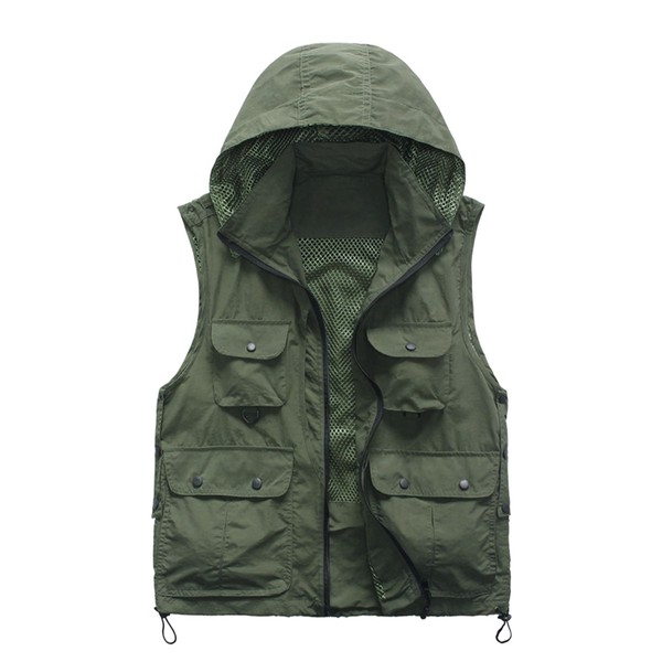 M2C Mens Hooded Mesh Multiple Pockets Traveling Vest 2XL Army Green