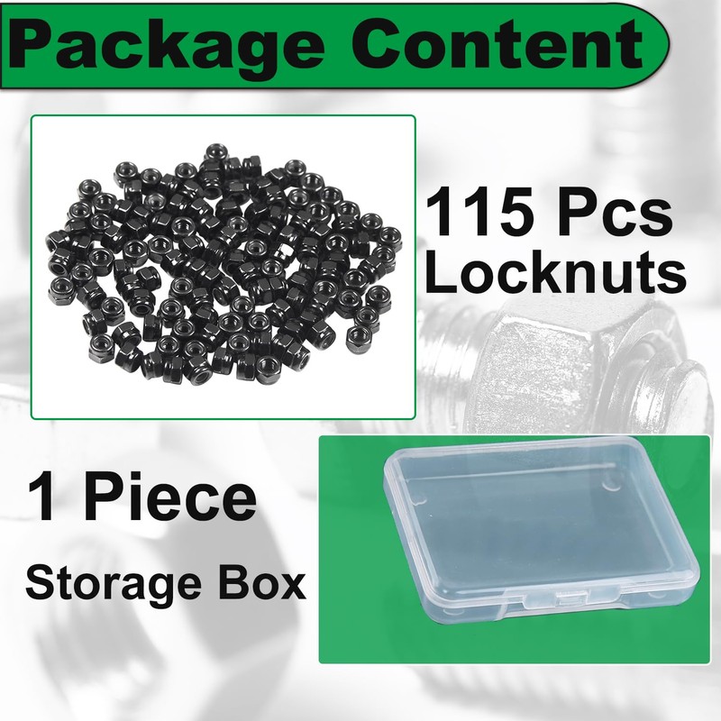 • Convenient Packaging: 115pcs M3-0.5mm locknuts are packaged in a clear plastic box, which keeps the nuts organized also helps prevent damage to the nuts during storage and transportation