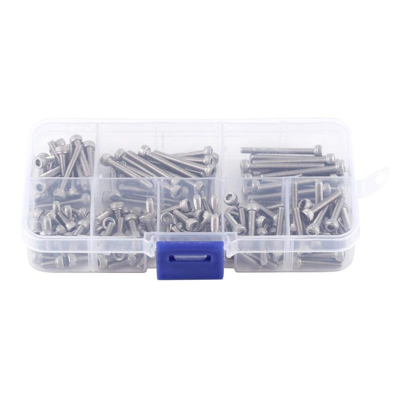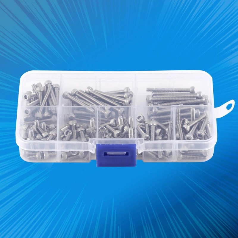M3 Hex Socket Cap Head Screws Bolts, 160pcs 304 Stainless Steel Metric Thread Hex Socket Bolts Assortment Kit, Used in Home and Office Appliance, Machinery, Furniture, Repair