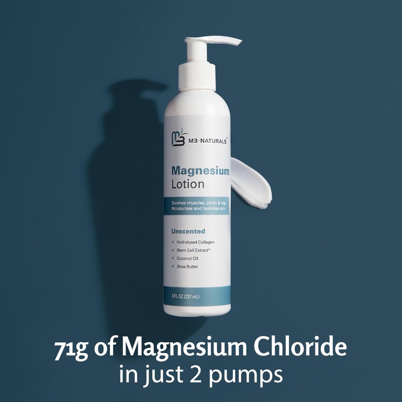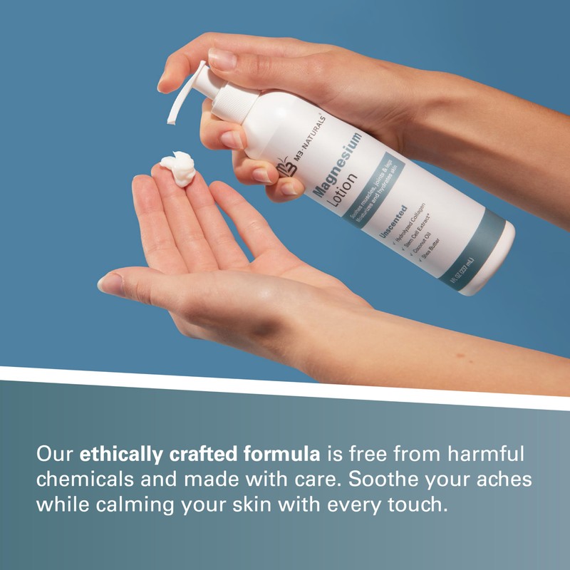 M3 Naturals Unscented Magnesium Lotion for Sleep - Helps with Muscle Relaxation, Soothes Tired Legs, Supports Restful Nights, Moisturizes & Hydrates Skin - 8 fl oz - Magnesium Cream, Butter, Topical Magnesium
