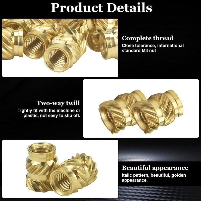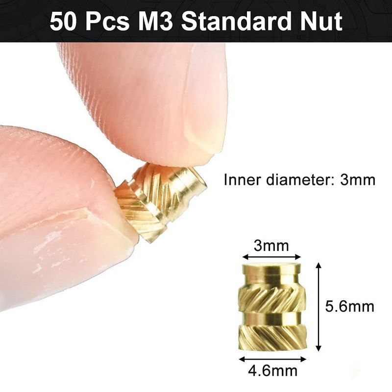 - 5. Versatile Reinforcement for Prototyping & Production Transform 3D prints into functional hardware: install with soldering iron or ultrasonic tools to secure PCB mounts, camera brackets, or drone components. M3 threading accepts standard screws for repeated assembly/disassembly without stripping plastic threads. 50-piece kit supports batch production of enclosures, robotics, or modular fixtures