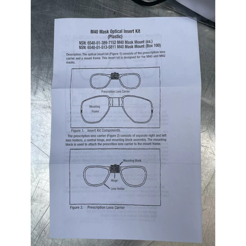 M40, M42 Gas Mask Optical Insert Mount Kit 4240-01-389-71