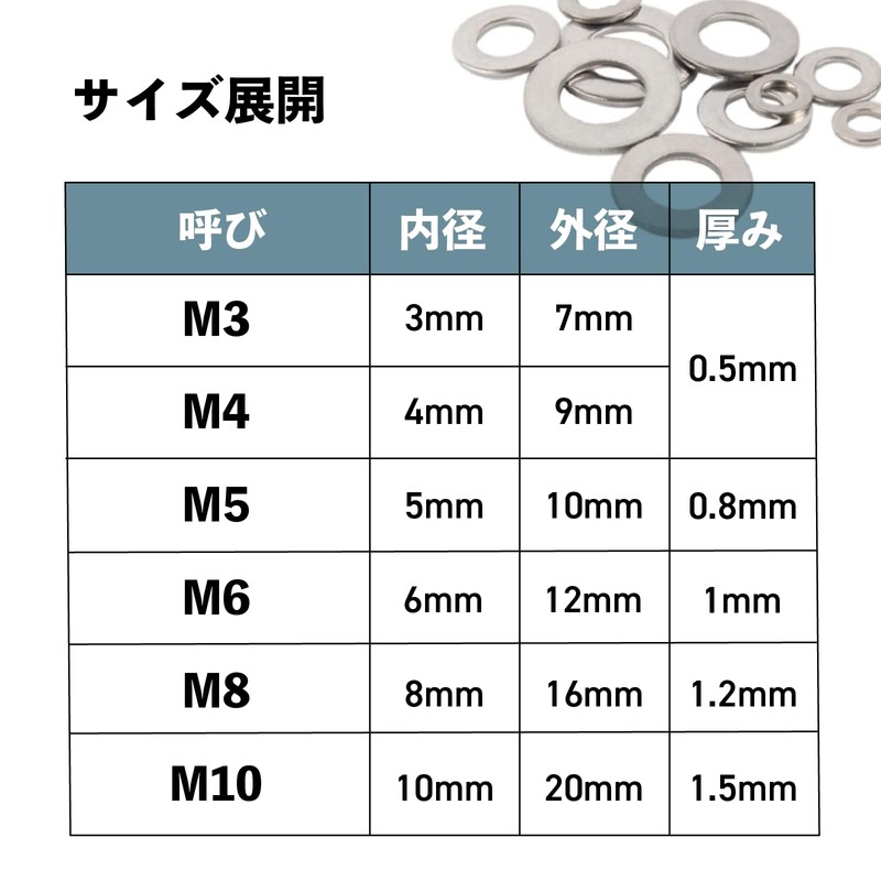 | Size: | M5:内径5mm×外径10mm×厚み0.8mm【100枚】 |