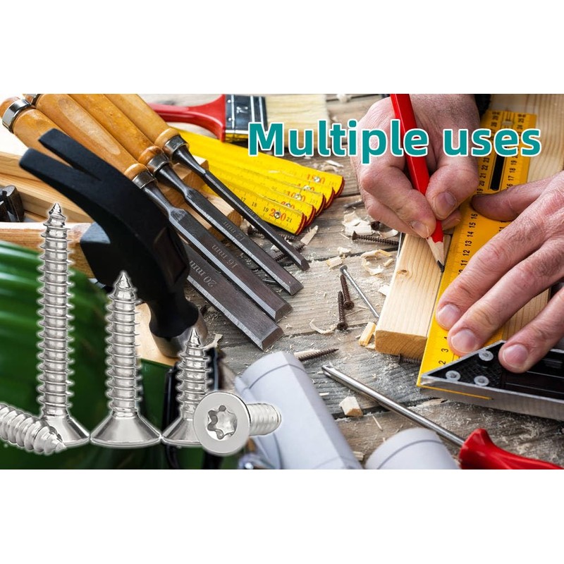 • Material: wood screws are made of high-quality 304 stainless steel and can be used indoors and outdoors. High strength, anti-corrosion, anti-rust.
