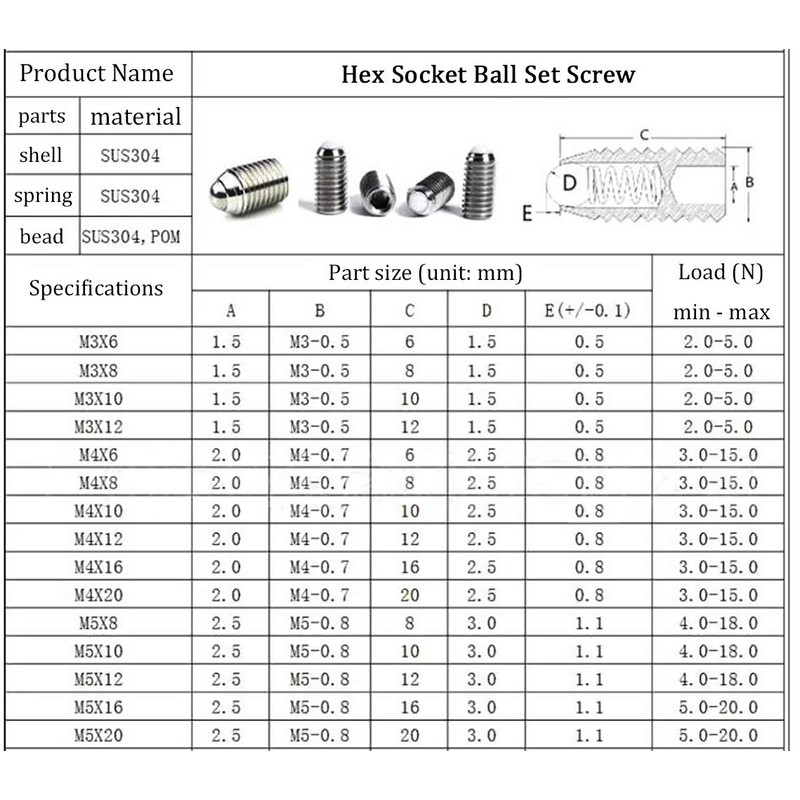 - Configuration: The stainless steel inner hexagonal bead screw (also called the marble machine, the ball plunger, the positioning bead screw) is a plunger-shaped assembly which is pressed by the spring, the bead and the shell through the interference fit.