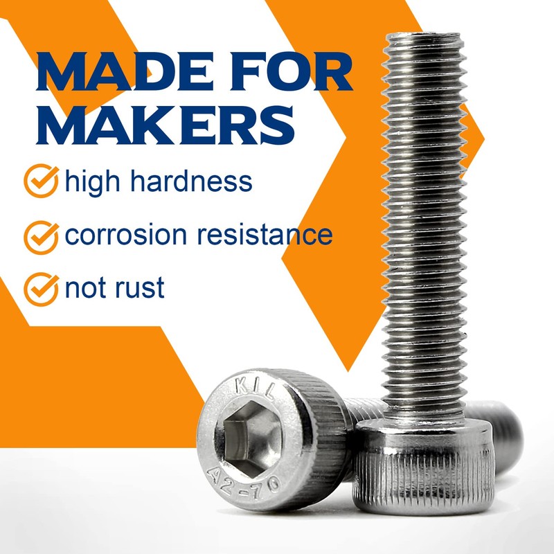 - ▶ Material: The socket head cap screws are made of 304 stainless steel (A2-70) , excellent rust and moisture resistance, along with good hardness and durability. Suitable for humid environments and outdoor installation.