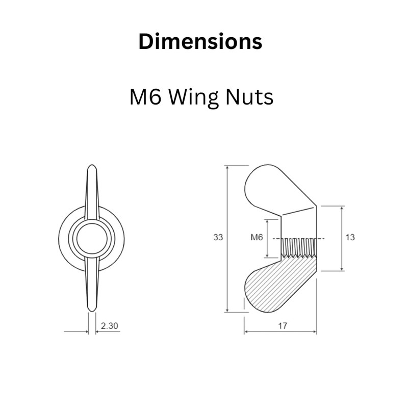 M6(6mm) Wing Nuts - Steel (Pack of 5)
