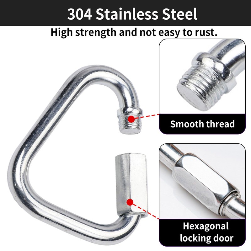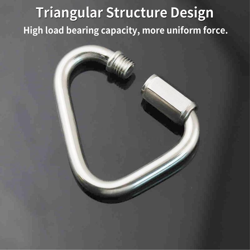 The triangle hook is made of 304 stainless steel, which is extremely wear-resistant and robust, easy to transport and store, the door of the locking screw has a hexagonal design, it is not easy to slip when opened, can be safely and quickly attached to attachment points to form a strong hook connection, suitable for backpack, cycling, mountaineering, climbing, camping. animals and so on.