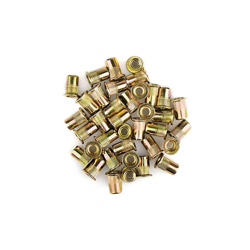 • 40Pcs of M6 Metric Rivet Nuts Threaded Insert. Flat head with knurled round body. Smooth surface without burrs