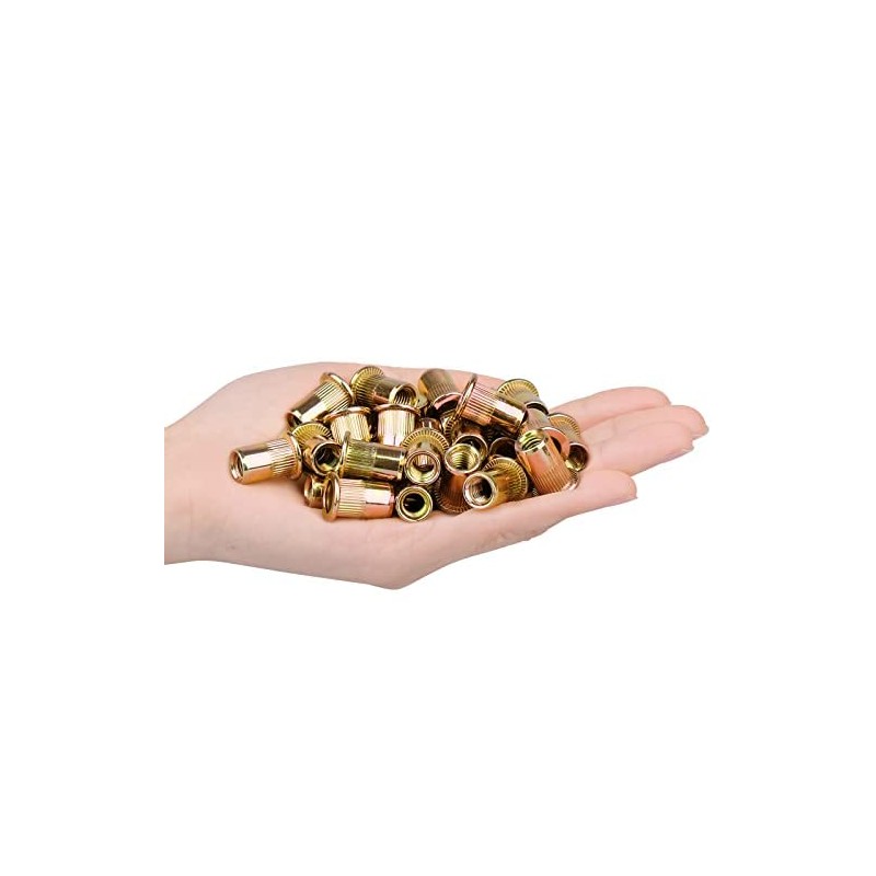 M6 Metric Rivet Nuts Zinc Plated Carbon Steel Threaded Insert Nut Nutsert Rivnuts Flat Head Knurled Body,40Pcs
