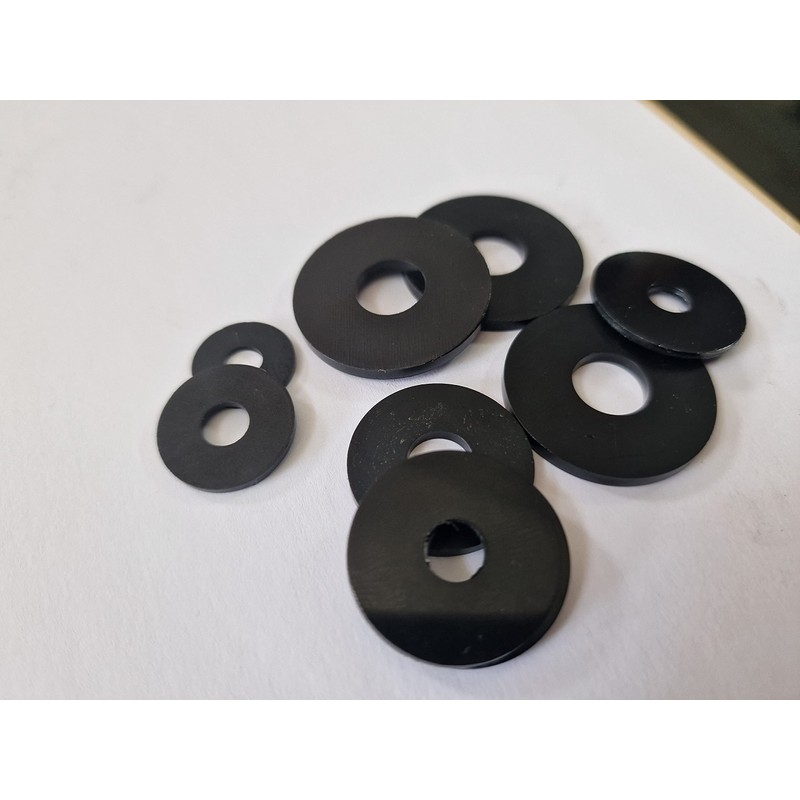 - [ M6 x 18mm BLACK NYLON WASHERS ] Made from quality nylon 66 material, black penny washers main task is to spread the load across a wider area which comes useful when dealing with softer materials. Nylon washers also reduce vibration and make it easy to loosen and tighten fastener assemblies. They provide a cost-effective option for spacing and cushioning, and can be used indoors or outdoors