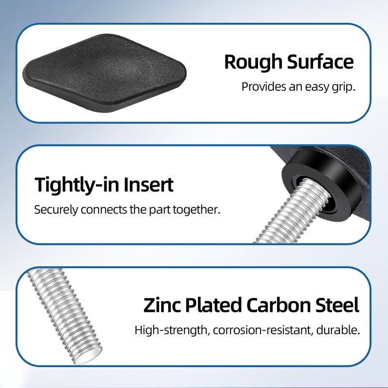 - Features: The high-temperature-injected metal inserts ensure a secure and stable connection between components, eliminating slippage during operation. The tee wing head design allows for effortless hand tightening or loosening without tools, combining leverage and comfort. The threads are burr-free, providing even force distribution and reducing the risk of stripping.