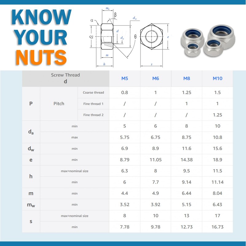 - MULTIPLE SIZES AVAILABLE – Flexible for different needs – Choose from a wide selection of metric sizes: M5, M6, M8 and M10. Perfect for adapting to different projects and materials with confidence. Refer to image for relevant sizing and specs.