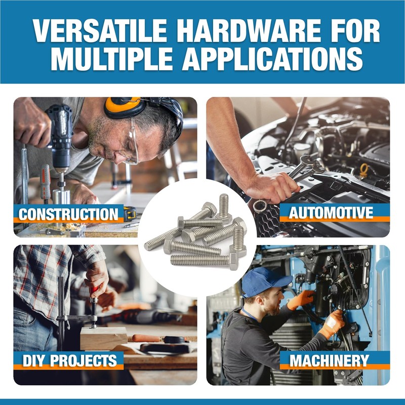 - HEX HEAD DESIGN – For quick tightening and secure grip – The hexagonal bolt head allows controlled tightening or loosening with standard spanners or sockets, making it convenient for both professionals and DIYers.